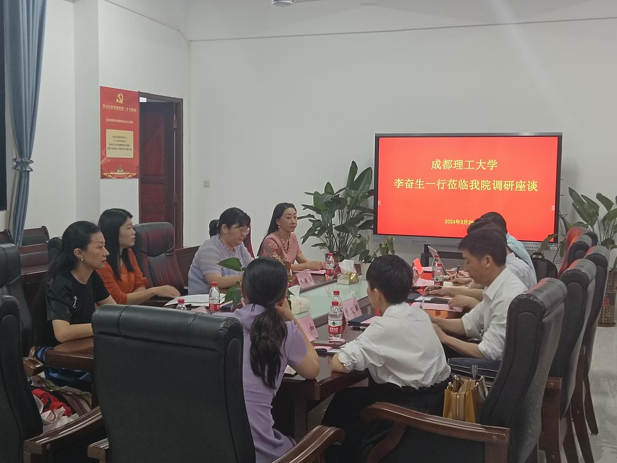 2024年3月29日下午,成都理工大学马克思主义学院党委书记李奋生一行来我院调研交流,我院党委副书记蒋瑜,副院长申明远、张妍,原理教研室主任王巍巍参与座谈。
