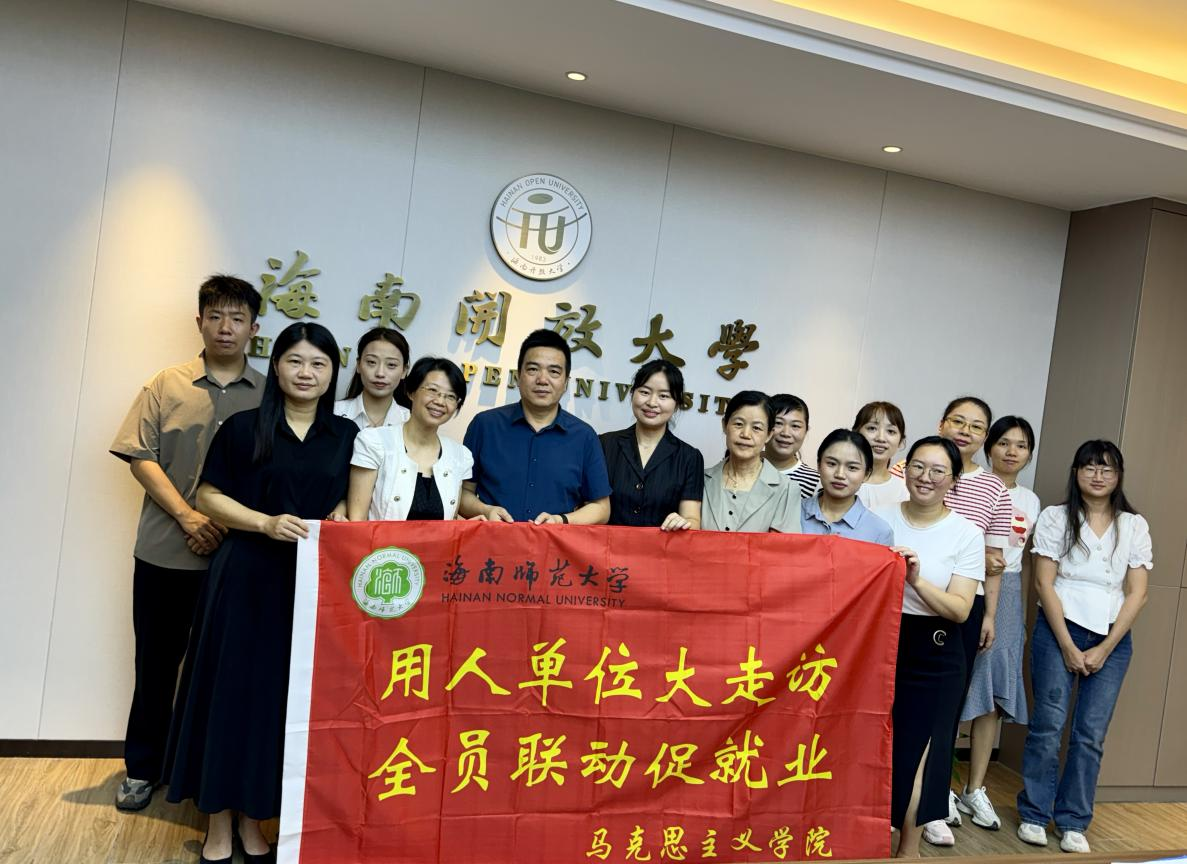 为持续拓宽毕业生就业渠道,促进毕业生高质量高效率就业,加强校际交流与合作,共同探索人才培养新模式,深化育人成效。2024年6月18日上午,星空游戏官方马克思主义学院党委书记兰岚、党委副书记蒋瑜、辅导员喻兴琼携2021级和2023级硕士研究生代表前往海南开放大学开展访企拓岗活动。