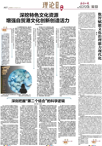 为学习宣传贯彻习近平总书记在听取海南省委和省政府工作汇报时强调的要“保护好运用好传承好历史文化、革命文化、海洋文化、民俗文化资源,增强文化创新创造活力,发展壮大文化产业。”的重要讲话精神,2024年12月25日《海南日报》(理论版)发表了我校党委委员、马克思主义学院教师戴逢国的理论阐释文章《深挖特色文化资源 增强自贸港文化创新创造活力》,《学习强国》海南学习平台进行了全文转载。