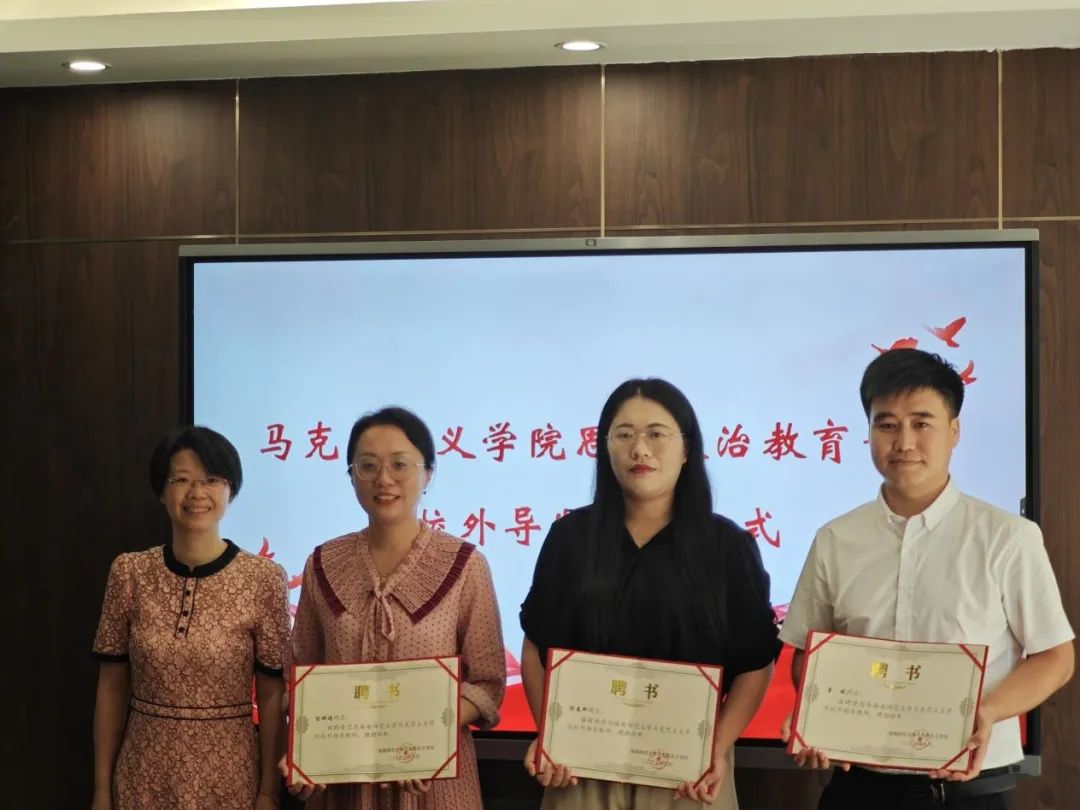 我院党委书记兰岚、副院长谢丹及校友会理事朱韫为新加入的校外导师陈婵娟、唐斌、陈春柳等颁发聘书,对其表示热烈的欢迎和由衷的感谢。希望校内外互融互通,齐心协力提升思想政治教育本科师范生培养质量,为国家的人才培养与海南自贸港的教育事业贡献力量。