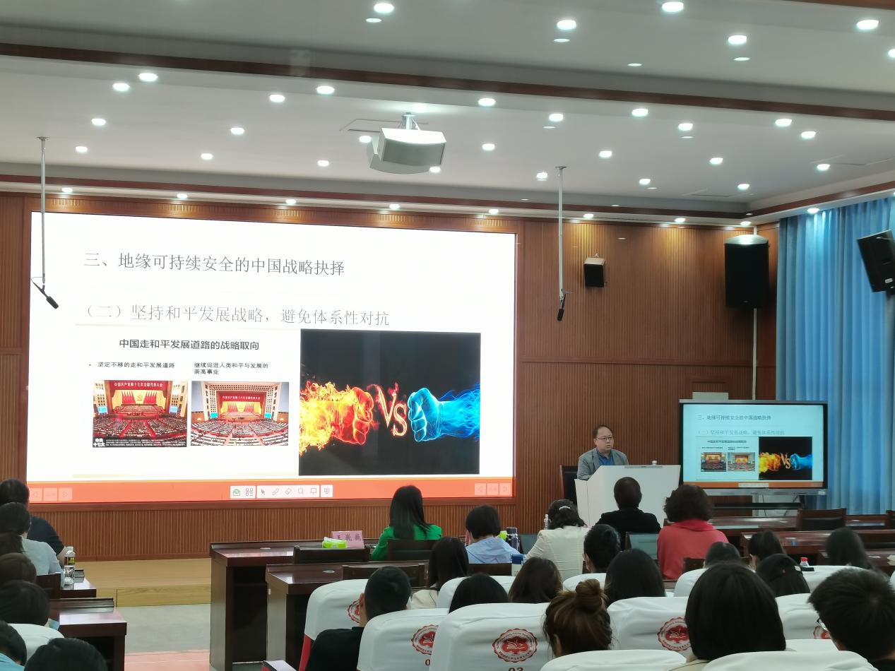 马克思主义学院院长陈红进行总结发言并指出,本次专题紧扣时代脉搏,深入剖析国际安全形势与总体国家安全观,具有深刻的现实意义。她强调,国家安全是国家生存发展的基石,而国际安全形势的复杂多变对我们提出了更高要求。她鼓励师生们将所学知识运用到实际生活中,持续关注国际安全动态,不断增强国家安全意识,在各自的岗位上为维护国家安全贡献力量。