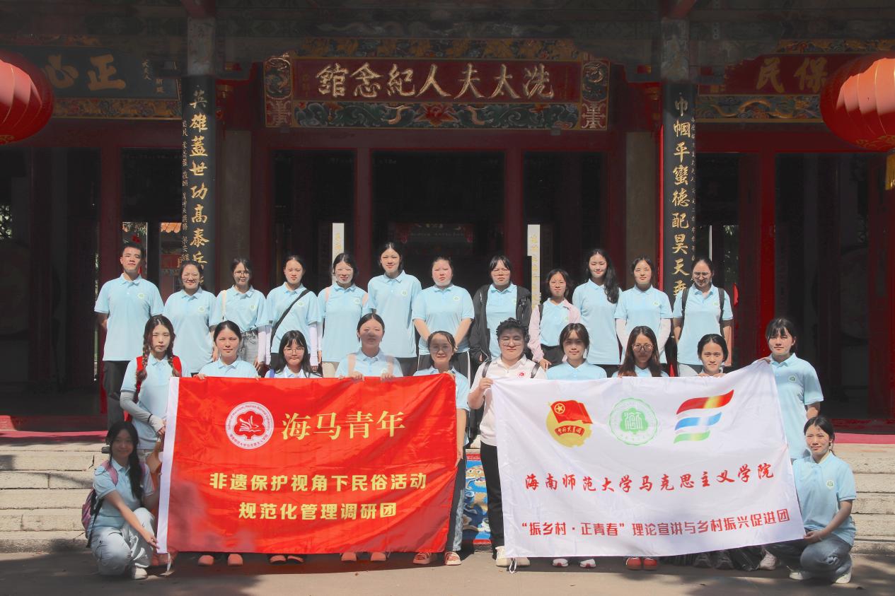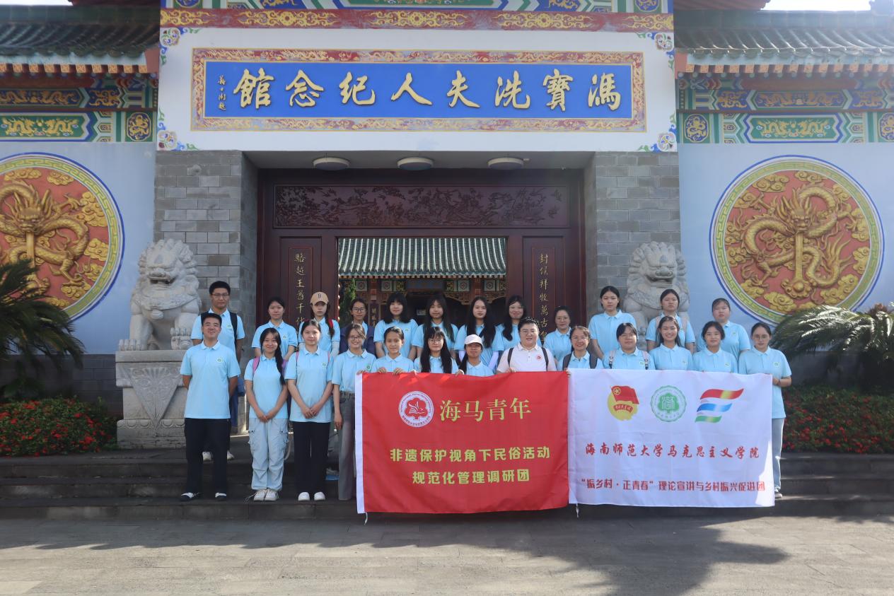 为深入了解国家级非物质文化遗产代表性项目“冼夫人信俗”的传承保护现状,特别是其大型民俗活动“冼夫人文化节(军坡节)”在非遗保护视角下的规范化管理实践与经验,2025年7月5日,星空游戏官方马克思主义学院海马青年“非遗保护视角下民俗活动规范化管理”调研团在学院副院长申明远副教授、马克思主义学院李秋菊老师的带领下,前往冯宝冼夫人纪念馆、高坡村冼夫人文化馆、得胜沙冼太夫人纪念馆、新坡冼夫人纪念馆、新坡镇冼夫人文化广场、拦海村冼太夫人纪念馆等地开展专题调研。