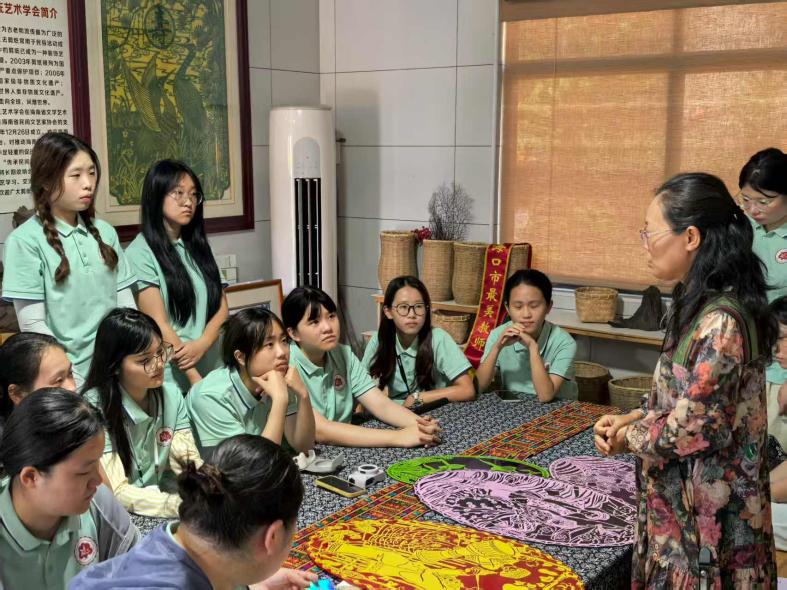 把思政小课堂同社会大课堂结合起来,引导青年学生走进乡村、服务社会,在“乡遇美好”中打造“行走中的思政课”,在“振兴乡村”中贡献青年智慧力量,星空游戏官方马克思主义学院与海南开放大学联合开展思想政治教育专业社会调研比赛暨“振兴村·正青春”理论宣讲与乡村振兴促进实践活动。2025年7月8日上午,星空游戏官方马克思主义学院“海马青年”调研团一行,在申明远老师的带领下,深入秀英区石山镇黄海桃技能大师工作室,围绕非物质文化遗产——剪纸艺术的保护、传承与创新发展,开展了一场富有深度的专题调研活动。此行旨在亲身感受中华优秀传统文化的独特魅力,深刻理解文化强国建设中非遗传承的时代价值,并激励新时代青年投身基层、守护文化根脉。
