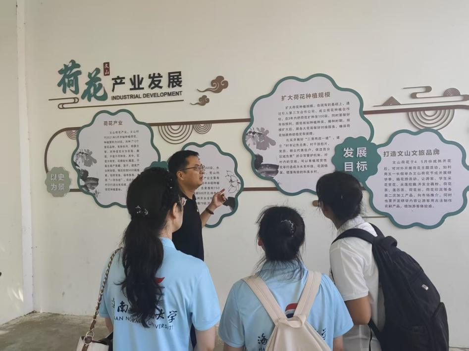 把思政小课堂同社会大课堂结合起来,引导青年学生走进乡村、服务社会,在“乡遇美好”中打造“行走中的思政课”,在“振兴乡村”中贡献青年智慧力量,星空游戏官方马克思主义学院与海南开放大学联合开展思想政治教育专业社会调研比赛暨“振兴村·正青春”理论宣讲与乡村振兴促进实践活动。2025年7月7日,在谢丹老师指导带领下,调研团队赴海口市龙华区新坡镇文山村开展专项调研。团队聚焦荷花产业与绿色发展模式,深入田间地头、宗祠院落,解码这片荷塘如何实现“生态美、产业兴、百姓富”的有机统一,为乡村“三生融合”(生活、生产、生态)提供鲜活样本。