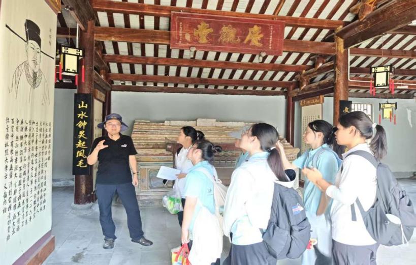 文化的浸润让绿色发展更有底蕴。在周氏宗祠,调研团看到斑驳的族谱记载着“耕读传家”的祖训,中央桥头的“骑牛耕读”雕像,诉说着村庄重视教育的传统。“以前村民对祠堂感情深,但不懂怎么和发展结合。”吴队长说,现在计划以宗祠为核心,打造“荷花文化研学线”,让游客在赏荷之余,听宗族故事、体验古法制藕粉,让文化资源变成旅游资本。从“卖产品”到“卖风景”再到“卖文化”,文山村正走出一条“生态+产业+文化”的融合之路。
