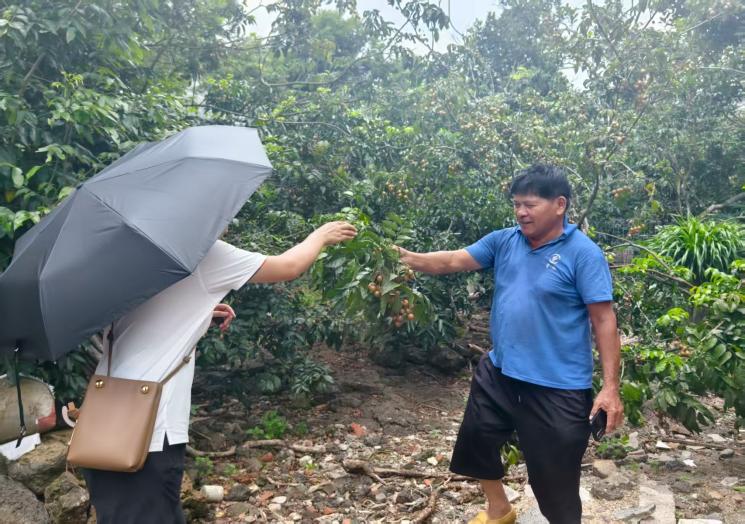 调研最后一站是永兴镇美孝村。一进村子,便被一种蓬勃的生命力所包围。几乎家家户户的房前屋后、坡地田垄,都被郁郁葱葱的荔枝树、黄皮果树所拥抱。浓密的绿荫下,饱满的果实压弯枝头,空气中弥漫着清冽果香。