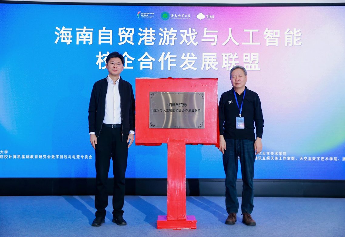 美术学院党委书记陈志彬,全国高等院校计算机基础教育研究会游戏与电竞专委会常务副主任、吉林艺术学院动漫学院副院长邵兵教授先后致辞。张引副校长和黄心渊教授为《海南自贸港游戏与人工智能校企合作发展联盟》揭牌。随后,来自高校、行业头部企业的10位专家学者围绕核心议题开展主旨发言。