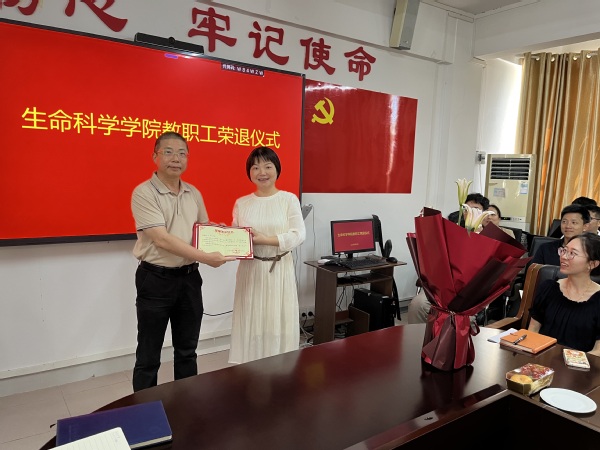 为表达对退休教师的崇高敬意和深切祝福,传承教育初心,弘扬师德风范,学院于07月07日下午在生物楼三楼会议室举行教职工荣退仪式。学院领导班子成员、退休教师刘强和全体教职工参加。仪式由学院党委书记邹锦云主持。