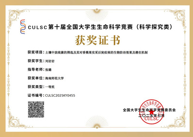 刘岩岩团队(指导教师:张璐):《土壤中放线菌的筛选及其对香蕉采后炭疽病的生物防治效果及潜在机制》;