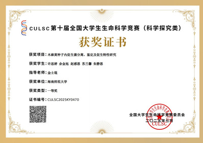 许思婷、余金旭、赵感恩、苏兰馨、朱静恩团队(指导教师:金士琨):《木麻黄种子内促生菌分离、鉴定及促生特性研究》。