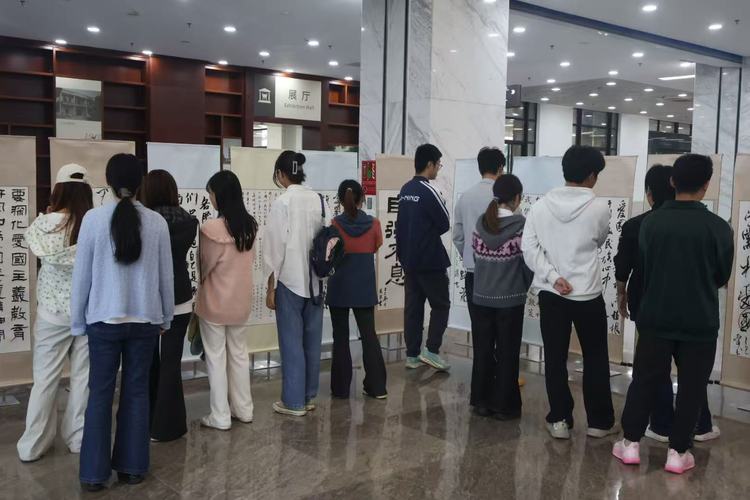 同日,“青春笔迹·家国情怀”纪念“一二·九”运动90周年主题书法作品展在桂林洋校区图书馆开展。展览汇集40余幅学生创作的作品,字里行间流淌着深沉的家国情怀,生动诠释了爱国主义作为民族精神核心的深厚力量。现场吸引众多师生驻足欣赏,在书香墨韵中营造出浓郁的红色文化氛围。