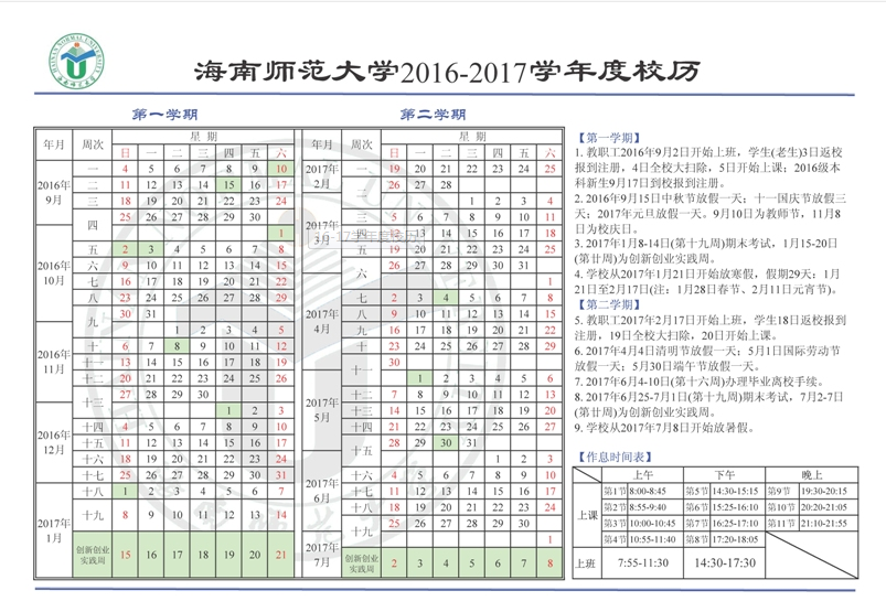 2016―2017年校历