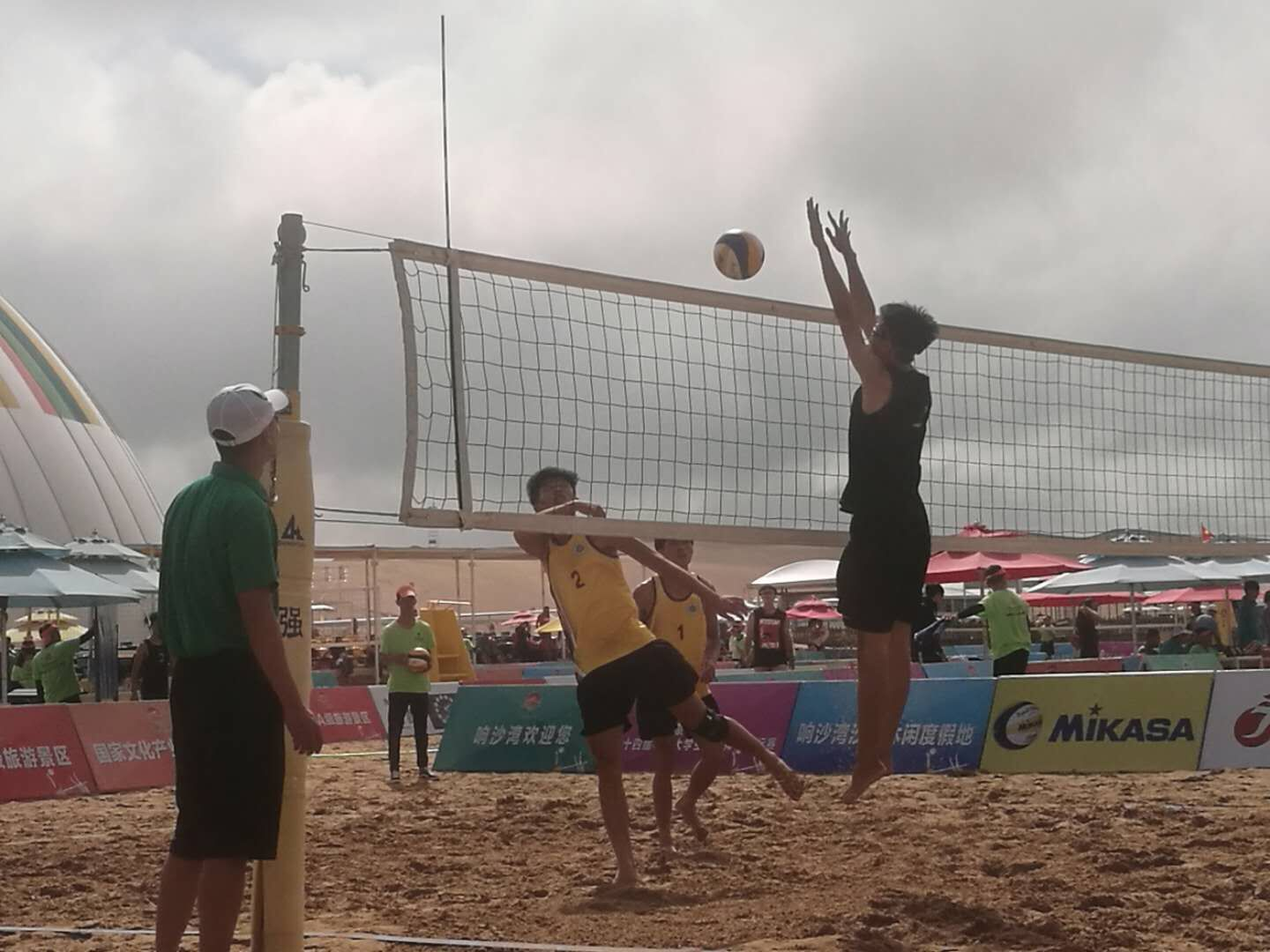 沙漠里干燥,温度高,上午九点和下午一点开始比赛,我校参赛队员需克服时差和恶劣的气候问题。从住宿酒店到用餐地需一个小时车程,用餐地到赛场需28分钟车程。队员从早上出发后,一整天都在场地,中午只有在沙滩小椅休息,非常艰苦。经过激烈的角逐,7月16日海师大男女沙排队均以小组第一进入决赛。在7月18日下午举行的冠亚军争夺赛中,男队对阵重庆师范大学,女队对阵中国海洋大学,海师大沙滩排球队员顽强拼搏,力克强敌,男女沙排队双双获得冠军,完美收官!