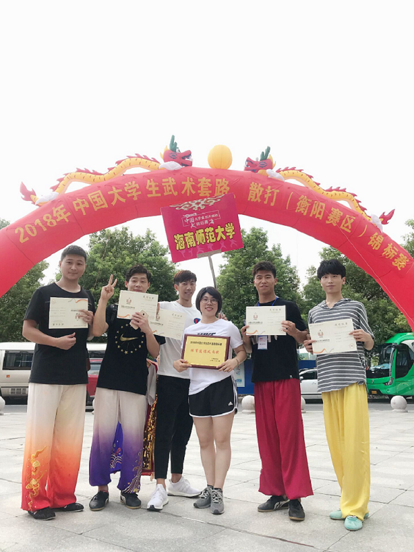我校体育学院5名运动员参赛。经过艰苦拼搏,郑汝钦同学获得男子甲组通臂拳第二名,刘华清同学获得男子甲组地躺拳第二名,刘朝伟同学获得男子甲组查拳第二名,魏庆磊同学获得男子甲组孙式太极拳第三名、其他太极器械-太极拳拂尘第五名,张博同学获得男子乙组翻子拳第四名、单器械-醉剑第七名。