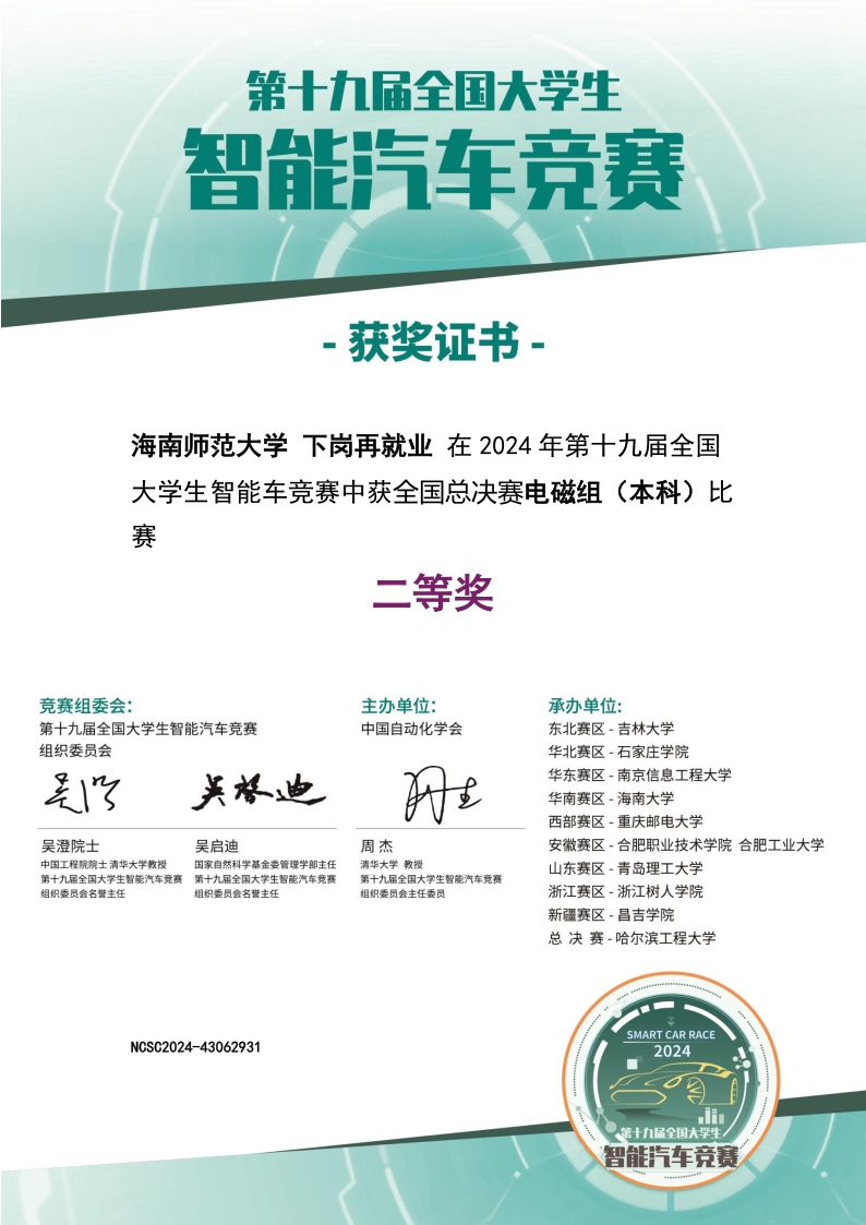 四轮电磁 | 省级三等奖 | 李嘉汉、王瑞、袁浩 | |