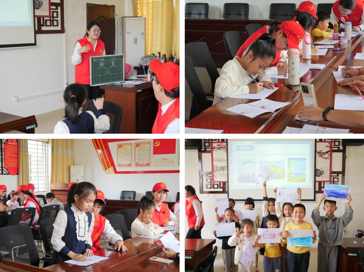 学生党员尹松苓主讲丘濬代表诗作《海》,她通过诗歌吟诵、文本细读、图文展示、诗词游戏等多样的方式,和孩子们一起领略诗中美景,品悟诗人心境。以鲜明生动、易于理解的语言,深挖诗词背后的人文背景、自然风物和人物故事。随后,孩子们在志愿者们的引导下,将自己所想象的海景绘于纸上并积极展示分享,本次趣味课堂增强了大家对中华优秀传统文化的自豪感与认同感,进一步坚定了文化自信。