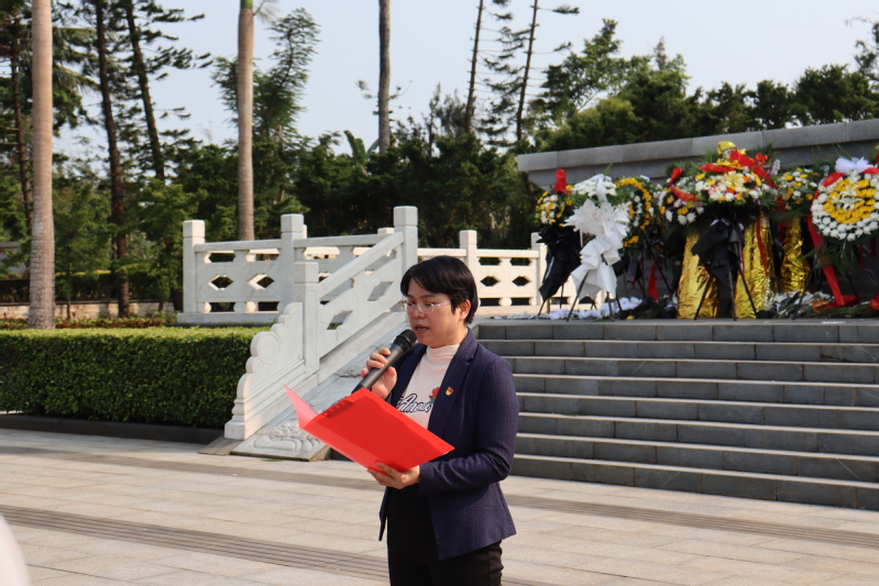 最后,文学院党委书记郑海妹同志作了总结讲话。她从铭记历史,淬炼信仰纯度和躬身践行,勇担时代使命两个方面展开,介绍了革命先烈的英勇事迹,并对革命先烈们为国家和人民做出的巨大贡献表示了崇高的敬意和深切的哀悼。随后,她结合当前形势和任务,对全体党员同志提出了殷切希望和要求。她强调,先烈精神不仅是历史的丰碑,更是行动的号角,我们要以先烈为镜:在科研攻关、专业学习中,发扬“敢教日月换新天”的斗争精神,在教书育人中,传承“润物无声”的奉献情怀;在社会服务中,践行“我将无我”的为民初心。她鼓励大家将缅怀之情转化为理想信念,将崇敬之意升华为奋斗动力,以“时不我待、只争朝夕”的紧迫感,为学院学校的发展建设添砖加瓦,为海南自贸港建设贡献智慧与力量。