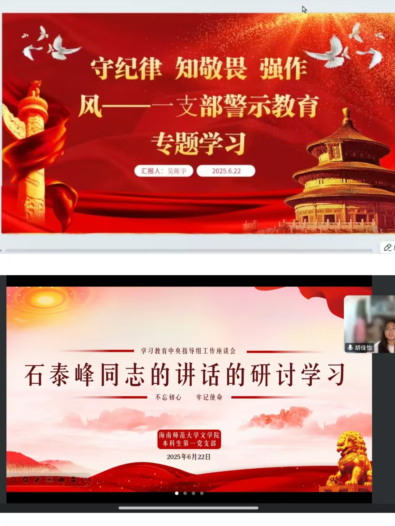 (胡佳怡、吴陈宇同志领学)