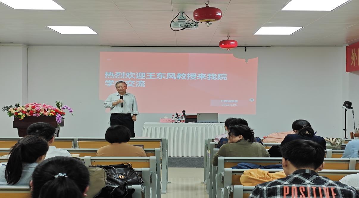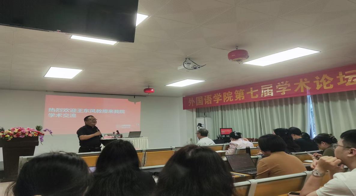 2025年3月25日下午,星空游戏官方外国语学院于实验楼二楼案例分析室举行了外国语学院第七届学术论坛系列活动之三。本次论坛由外国语学院院长陈义华教授主持,特邀中山大学外国语学院院长王东风担任主讲嘉宾,围绕《AI时代的文学翻译》这一前沿话题展开深入探讨。