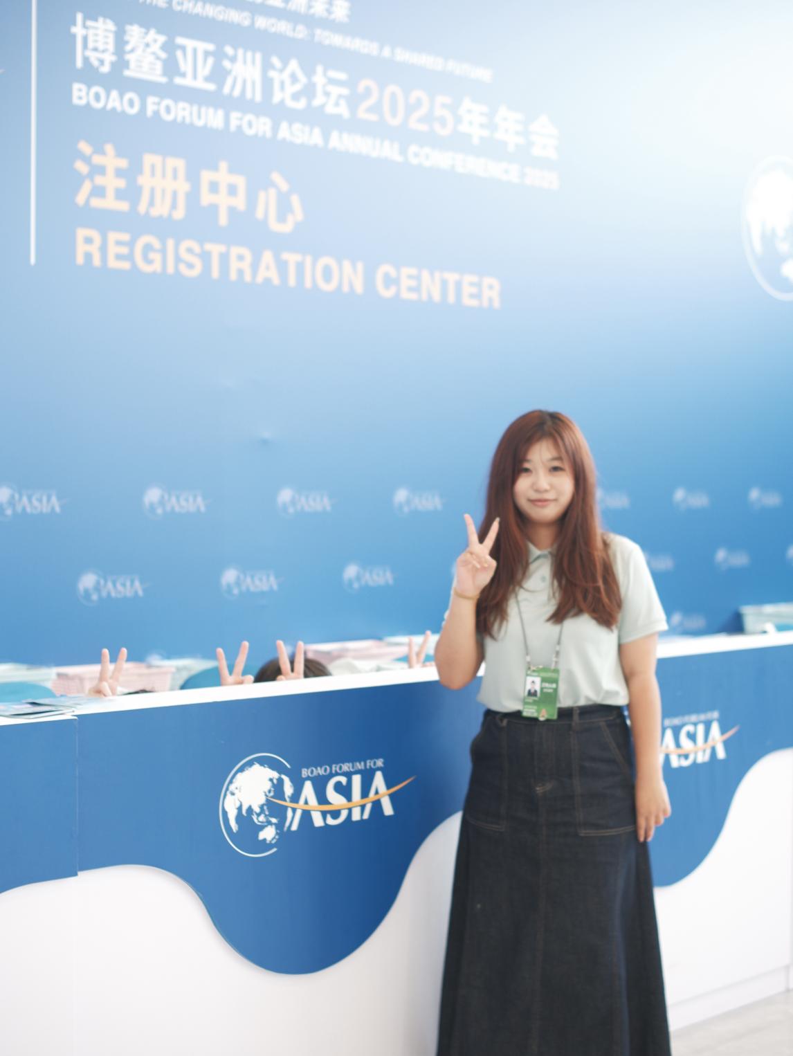 2023级英语6班的付雨萌表示,今年是她第一次参加博鳌亚洲论坛志愿服务工作,当她回顾参与博鳌亚洲论坛2025年年会安保证件服务工作的时光,心中满是感慨与温暖,这次志愿服务无疑是一段无比珍贵的经历。工作前期,面对堆积如山的信息资料和物料,她没有丝毫退缩。每一次仔细核对资料,每一回认真整理物料,都承载着她对这份志愿服务的热忱。发放证件、徽章和纪念礼包时,她看到参会者们眼中的期待与信任,那目光如同一束光,照亮了她志愿服务的道路。并且,在登记备案工作中,她时刻提醒自己不能出错,严谨是对工作负责的态度。此次志愿服务,不仅提升了她的沟通和组织能力,更让她开拓了视野,接触到来自不同领域的优秀人才。这段经历,于她而言是成长的阶梯。她学会了如何在高压下有条不紊地工作,如何以真诚态度服务他人。博鳌之行,是她人生旅程中闪耀的篇章,她将带着这份宝贵经历继续前行,在志愿服务的道路上步履不停,传递爱与温暖!