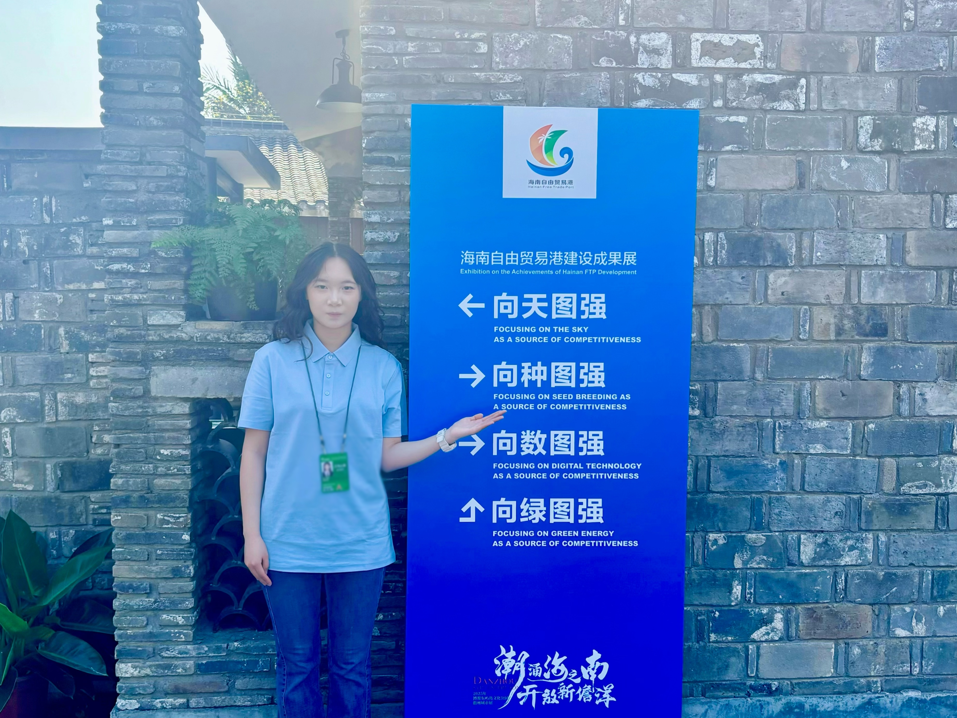 2024级翻译1班的刘思佳表示,作为一名大一新生,今年三月底她有幸来到博鳌亚洲论坛新闻宣传保障组工作,她要感谢学院以及学校老师的帮助与支持。怀揣着对新闻宣传工作的憧憬与忐忑,她踏入这片汇聚世界目光的会场。在初次拿到工作证时她意识到——那不仅是身份的象征,更是一份沉甸甸的责任。她来到了海南自由贸易港建设成果展暨儋州城市展,并在那里为前来参会的数百名中外嘉宾与多家记者媒体提供协助。作为机动组,他们还肩负着应急处置事物的重担。他们为讲解员与嘉宾发放并收集耳麦,也为嘉宾与记者们送上清凉可口的椰汁,让世界各地的人都能品尝到海南美味。这场盛会用细节教会她何为“螺丝钉精神”——再微小的岗位都需要极致专注。诚然面临着语言沟通的巨大挑战,但当外国嘉宾用生涩的中文对她说“你们好、谢谢、辛苦了”等问候时,他那灿烂的笑容和诚挚的感谢,让她真切感受到志愿服务跨越语言与国界的力量,体味到那些日日夜夜的付出突然有了重量。这段经历如同淬火的铁器,让她褪去青涩,在协作中懂得担当,在压力下学会从容。博鳌的海风终会散去,但这段带着油墨香与汗水味的记忆,将永远锚定在她青春的航程中。