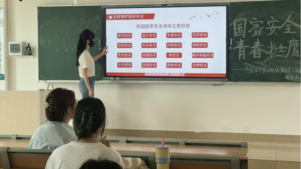 外国语学院各团支部围绕“青年在维护国家安全中的责任”展开热烈讨论,提出青年应从自身做起,在网络社交中谨慎言行,防止泄露国家机密。同时,当代大学生应积极参与国家安全宣传教育活动,向身边人普及安全知识。