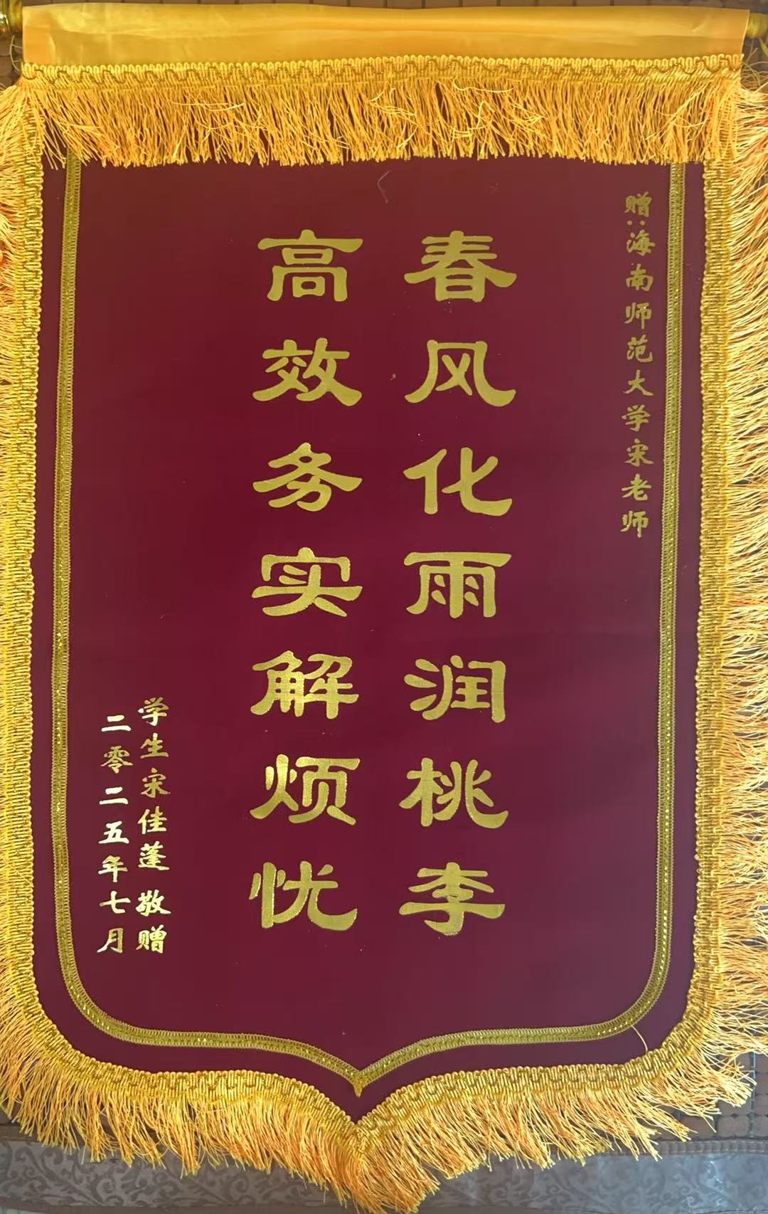 “其实就是分内的小事,学生顺利毕业比什么都重要。”面对感谢,宋诗羽老师笑着说。作为教学秘书,她始终将学生需求放在首位,用细致耐心的态度化解教学管理中的“疑难杂症”,用主动热心的服务为学子成长保驾护航。这面锦旗,不仅是对她工作的肯定,更是师生间暖心情谊的生动见证。