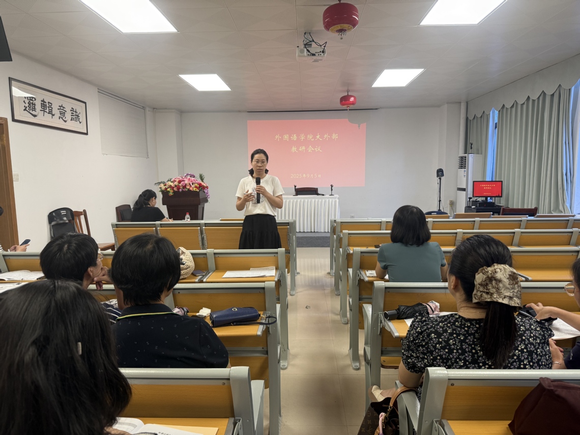 为持续深化课堂教学改革,全面提升大学外语教学质量,2025年9月5日下午,外国语学院大学外语教学部组织全体教师围绕《全新版大学高阶英语(三)综合教程》中的“Never Judge by Appearance”单元,开展了首次集体磨课研讨活动。