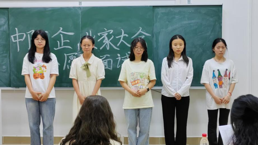 面对面试官的提问,同学们镇定自若地回答,展示了其丰富的文化知识储备、流利的口语表达能力以及良好的专业素养。