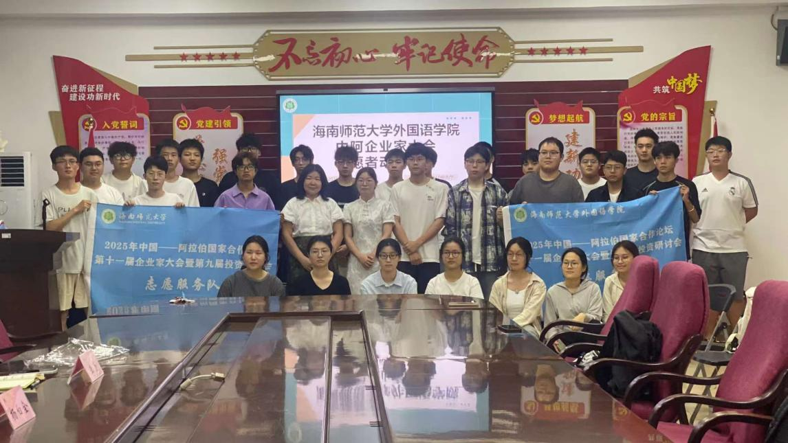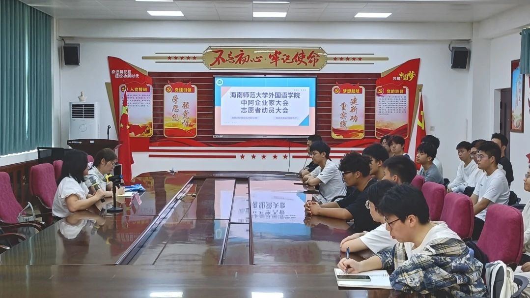 为做好2025年中阿企业家大会的服务保障工作,展现海师外院学子积极向上的志愿风貌,2025年4月25日12时,星空游戏官方外国语学院2025年中阿企业家大会志愿者动员大会在外语楼党员活动室顺利召开。外国语学院党委副书记杨白全、团委书记李敏及30名入选志愿者参与此次大会,会议由李敏老师主持。