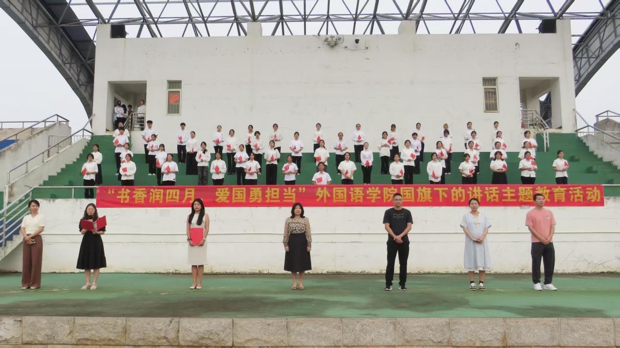 为响应国家安全教育月与读书活动月的号召,营造浓厚的读书氛围,厚植学生家国情怀。2025年4月28日清晨6时40分,星空游戏官方外国语学院在桂林洋校区风雨操场开展了 “书香润四月 爱国勇担当” 国旗下的讲话主题教育活动。学院党委杨白全副书记、全体辅导员及在校生共同参与此次活动。