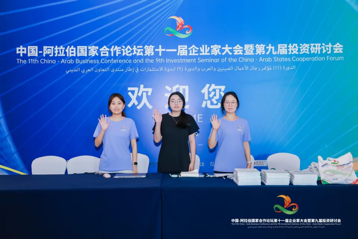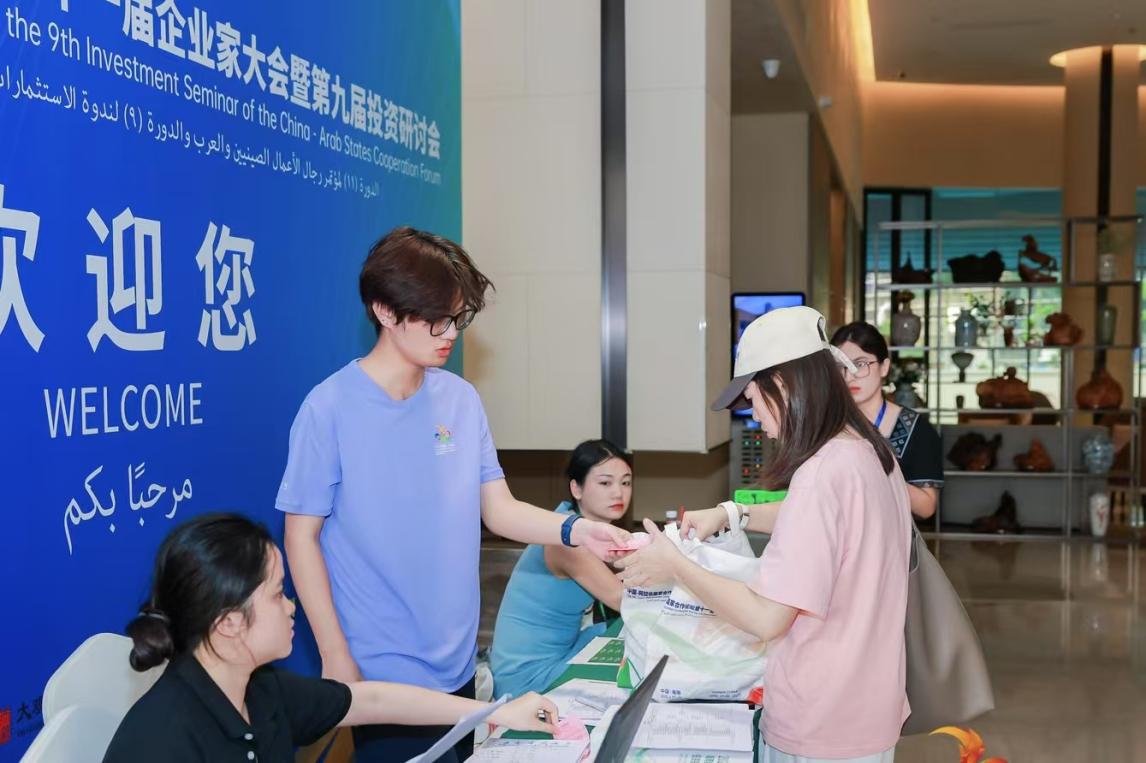 在中阿企业家大会的志愿服务中,志愿者们分别投身于接机组、酒店签到组、制证组和后勤组,在大会的各个角落发光发热,为大会的顺利举办保驾护航。