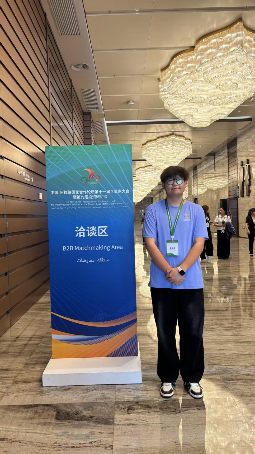 2024级英语6班的寇永臻表示,很荣幸能作为中阿企业家大会的志愿者,参与接机、展馆服务以及陪同外宾考察洋浦的工作。在接机时,他热情地迎接每一位外宾,用微笑和礼貌的问候缓解他们的旅途疲惫。在摩洛哥展馆,他积极协助工作人员,为外宾介绍展品,解答疑问,见证了中摩两国在经济、文化等领域的深度交流。前往洋浦考察的途中,他更是感受到了外宾对中国发展的浓厚兴趣,他们对中国的港口建设、产业发展等提出了诸多问题,他也从他们的话语中了解到了阿拉伯国家的商业理念和文化特色。这次志愿者经历不仅提升了他的沟通能力和应变能力,更让他深刻体会到了中国与阿拉伯国家之间友好合作、互利共赢的深厚情谊,也让他明白了作为志愿者在促进国际交流中的重要角色,未来他定会珍惜每一次这样的机会,为文化交流贡献更多力量。