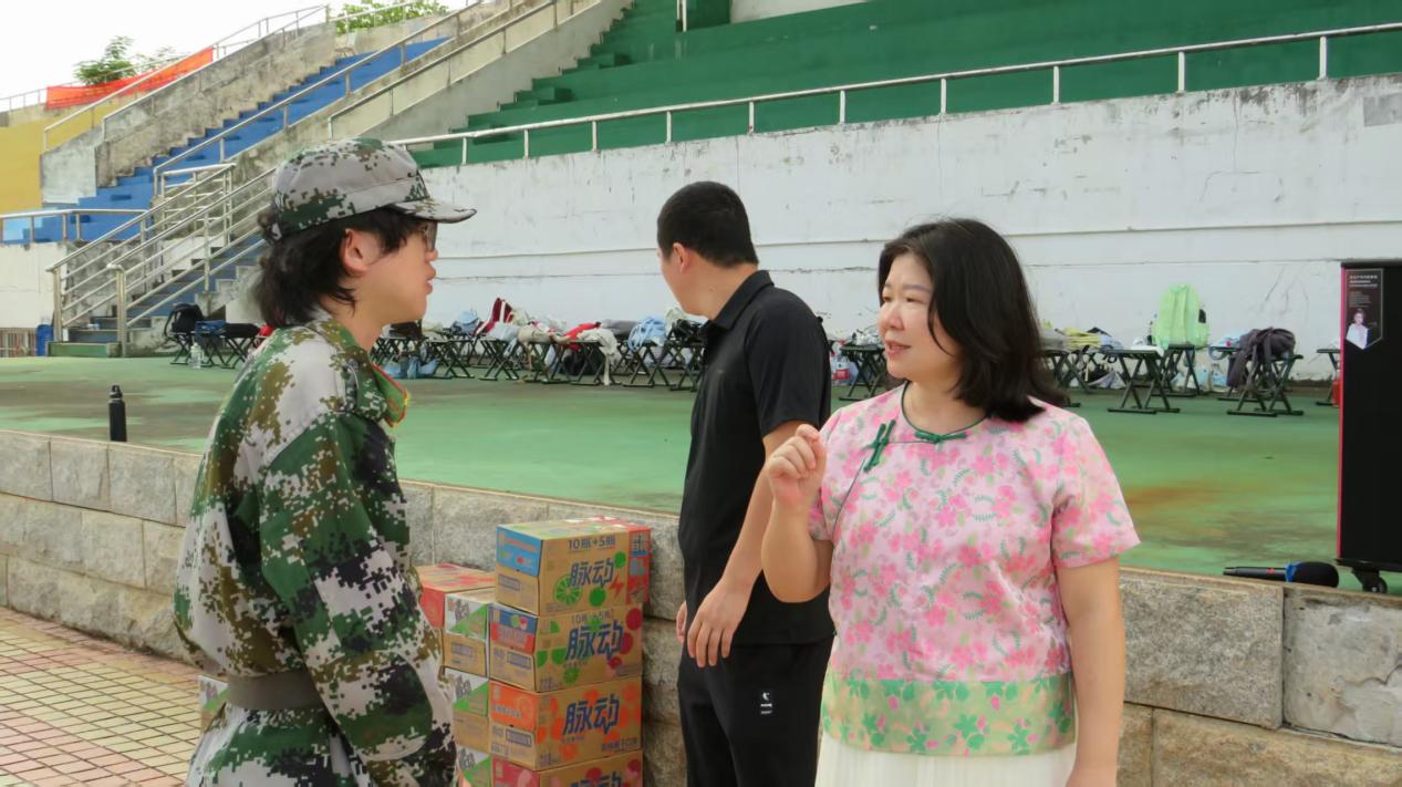 军训砺意志,关怀暖人心。2025年9月21日15时30分,星空游戏官方外国语学院党委杨白全副书记与2025级辅导员朱大珩老师,前往风雨操场,看望并慰问正在军训的2025级承训教官及新生。