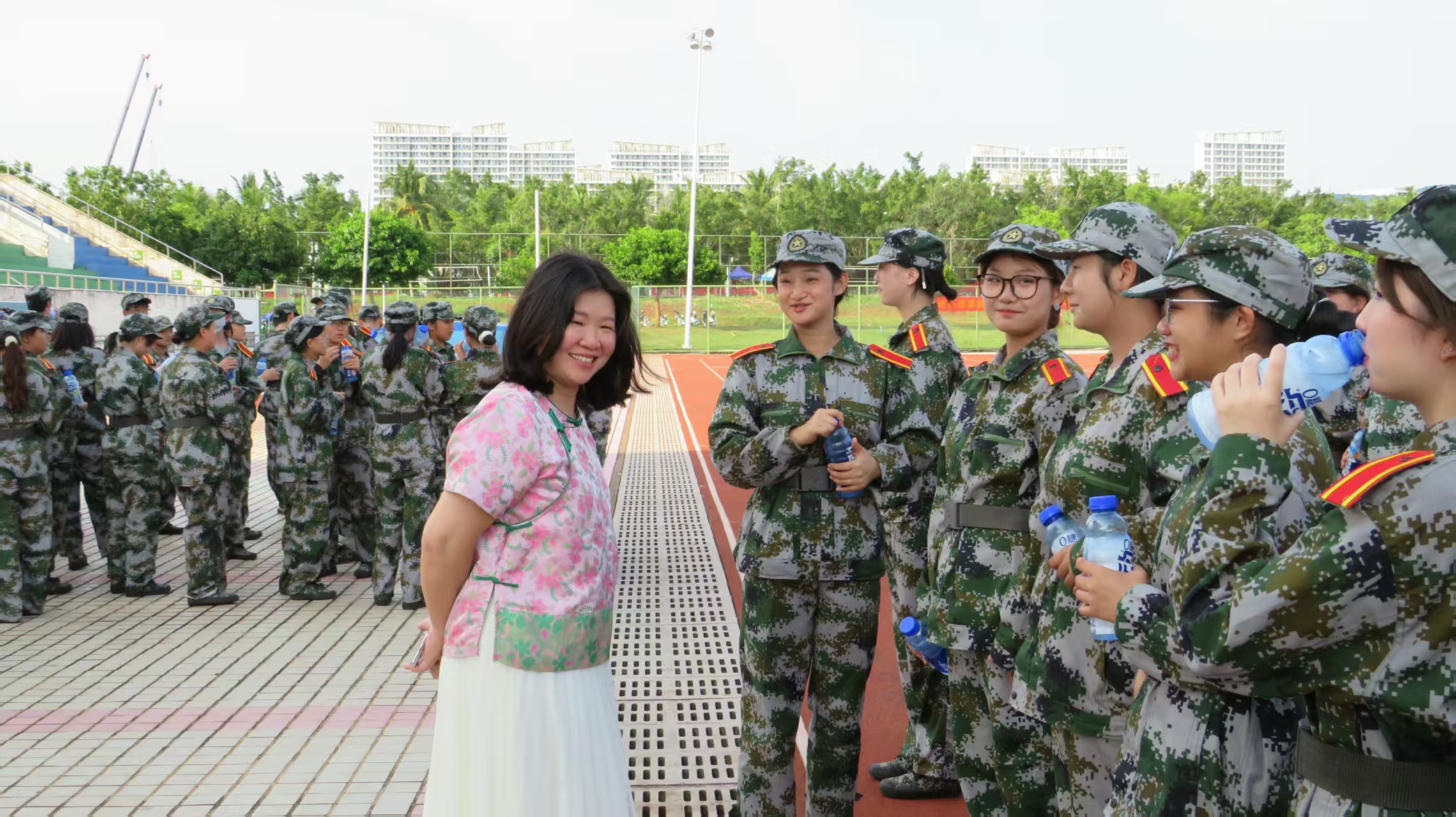 杨书记利用训练中途休息时间首先代表全体学院师生,以热烈掌声向所有教官致以诚挚感谢,肯定教官严格训练下新生取得的显著进步。她希望新生始终牢记使命,严守纪律,磨炼意志。杨书记还分享了历年外国语学院学子参军报国的种种案例,鼓励新生在国家需要时主动投身军营,奉献青春力量。