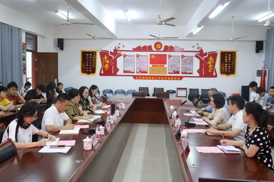 为进一步加强院校合作,深化审判实务与法学理论教育的交流互动,促进优秀法学人才的培养,4月28日下午,海口市秀英区人民法院与我院在我校桂林洋校区法学院会议室举行座谈交流会。秀英法院党组书记、院长童琦,党组成员、副院长黄谦,党组成员、副院长段欣,审管办副主任曾洁爽,法学院院长张霞,正处级辅导员、纪委书记李秋花,副院长周兆进,学生党支部书记禤丽琴,团委书记朱梦飞出席会议,2023级学生代表参加交流。会议由周兆进副院长主持。