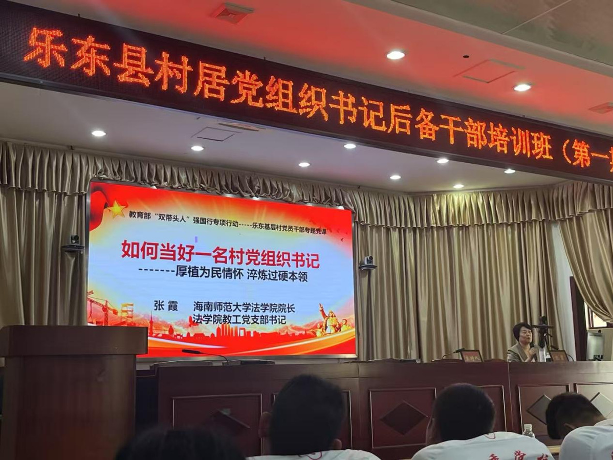 为深入贯彻落实高校“双带头人”教师党支部书记工作室建设要求,推动党建与乡村振兴深度融合,星空游戏官方法学院教工党支部积极响应“强国行”专项行动号召,于2025年5月8日应中共乐东黎族自治县委组织部之邀,为乐东全县村(社区、居)党组织书记后备力量开展“如何当好一名村党组织书记”专题培训。此次培训由“双带头人”教师党支部书记工作室负责人、星空游戏官方法学院院长张霞教授领衔主讲,充分发挥“党建带头人”和“学术带头人”双重引领作用,通过“思想铸魂+能力筑基”双线并进,为乐东县村党组织书记后备力量注入新动能,彰显高校党建服务国家战略的使命担当。