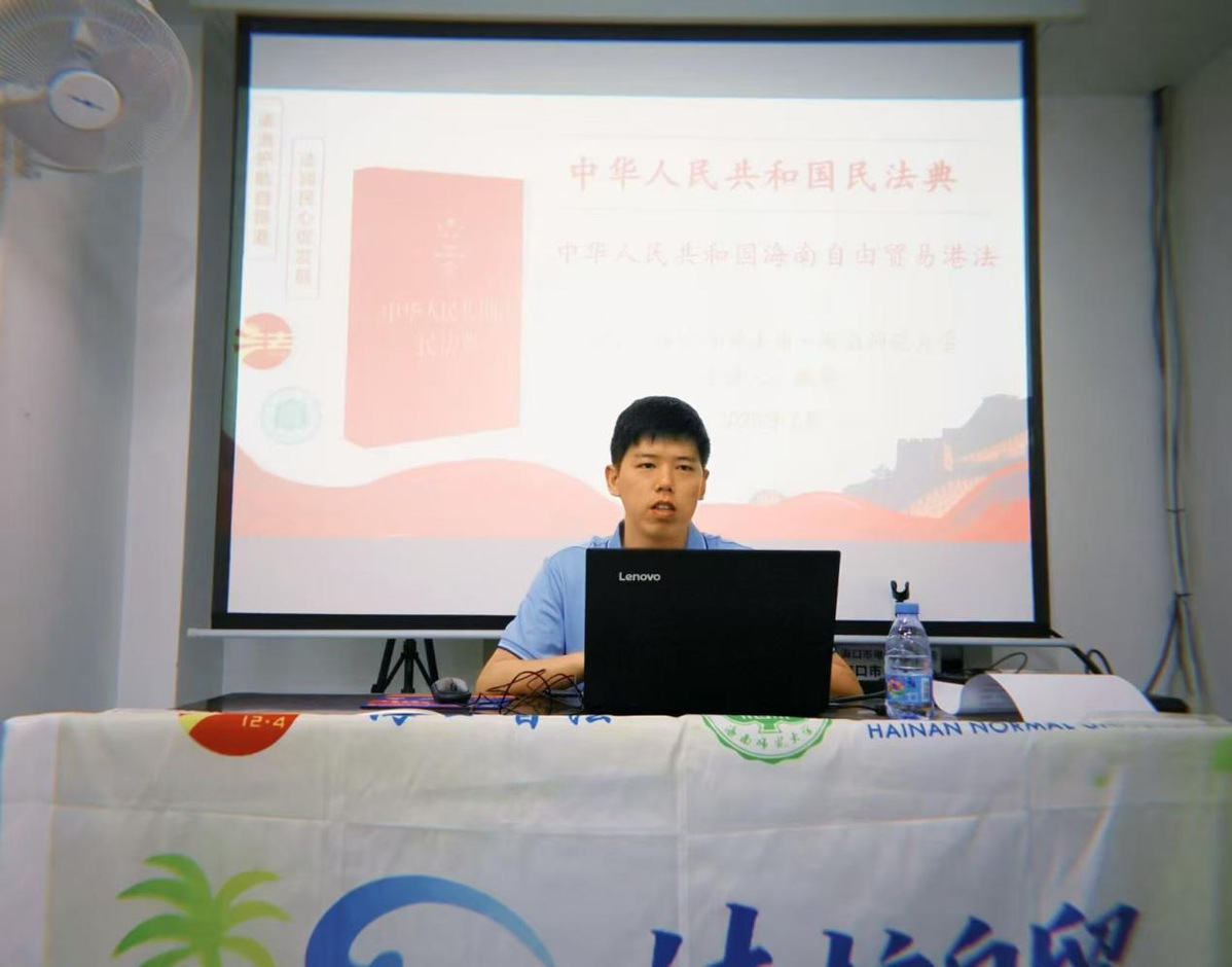 6月27日至7月16日,由臧昊和脱晓玉老师带队指导的“法护自贸·创领新篇”自贸港普法实践团深入秀英街道高新社区、北冲溪社区、三门坡红居等地开展暑期三下乡系列普法活动。团队精心编排并展演了原创普法情景剧《两瓶啤酒惹的祸》,生动再现了农村自建房过程中常见的合同规范、施工资质认定、侵权责任承担等纠纷,有效引导群众在日常生活中树立安全意识和合同意识。团队指导老师臧昊副教授面向社区、农村居民及企业员工等群体,普及了《民法典》及《海南自由贸易港法》的相关知识。“普法情景剧+法律知识讲座”的形式生动新颖,以“剧”说法、以案释理,贴近生活,赢得了当地群众的广泛赞誉。
