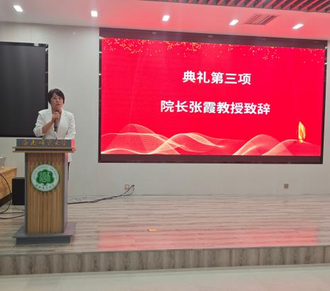 典礼第三项,法学院院长张霞教授致辞。院长围绕法律思维淬炼、法治信仰坚守、终身学习践行三个方面寄语新生:要锤炼权衡性、结构性、创新性法律思维以筑牢专业根基;经历知识积累、实践进阶、认知升华三阶段践行终身学习;更要立足海南自贸港建设,做法治建设排头兵、追光者与终身学习躬行者,在法治征程中勇毅前行。